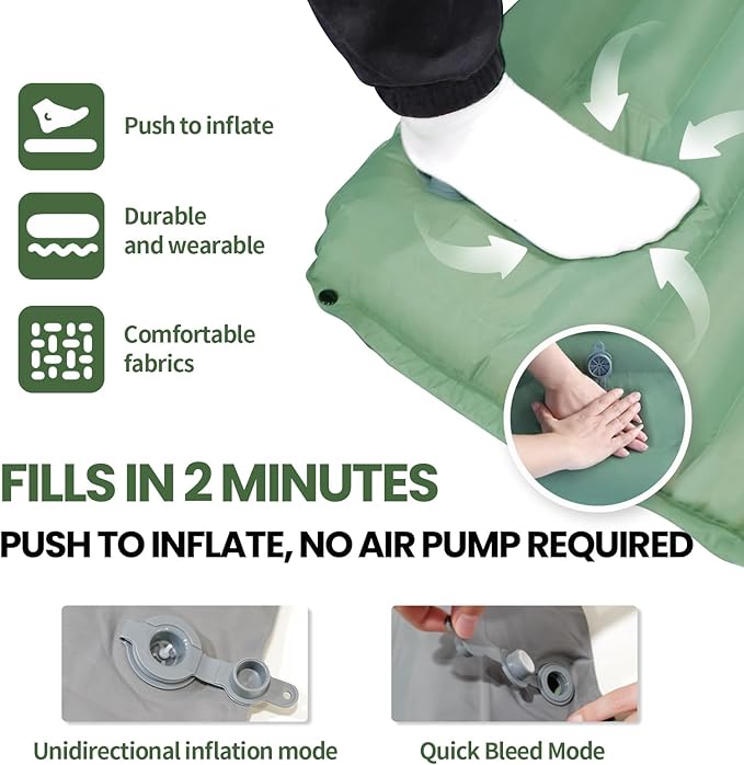 Camping Sleeping Pad - Camping Mattress, 4" Thick Ultra-Light, Pillow Built in Foot Pump, Thickened and Silent Anti-air Leakage, Hiking Camping, Family Trips Green