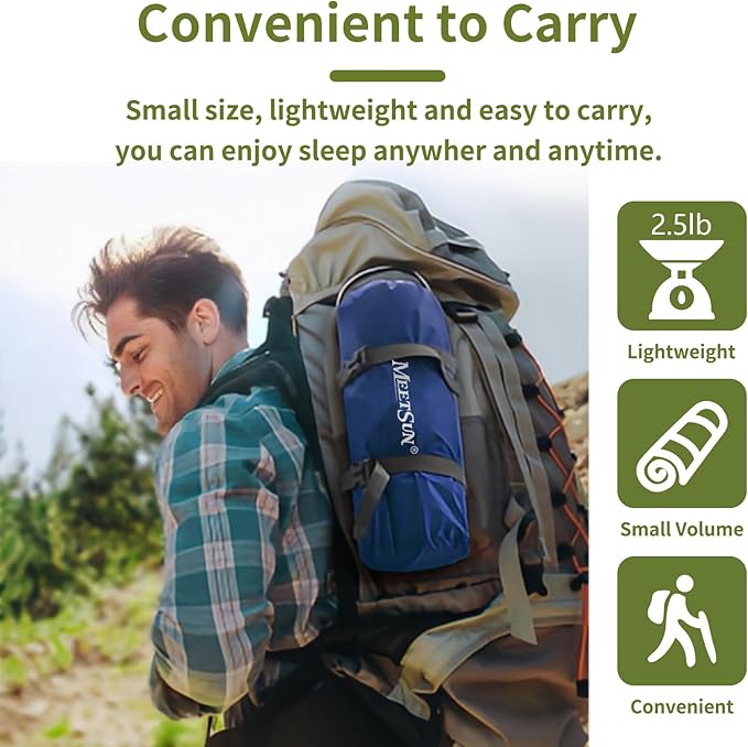 MEETSUN Insulated Sleeping Mat for Camping,50D Poly Pongee Fabric,Wear-Resistant,Enlarged Size,5" Thick Camping Mattress Pad with Built-in Foot Pump,Lightweight Sleeping Pad for Backpacking,Car,Tent.
