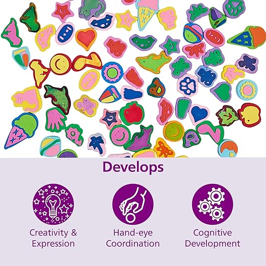 Colorations Mega Foam Stamper Mix, Bulk, Value Pack, 80 Stamps, 25 Assorted designs, EVA Foam, for Kids, Arts & Crafts, Educational, Gift, Non-Toxic, Learning, Stamping