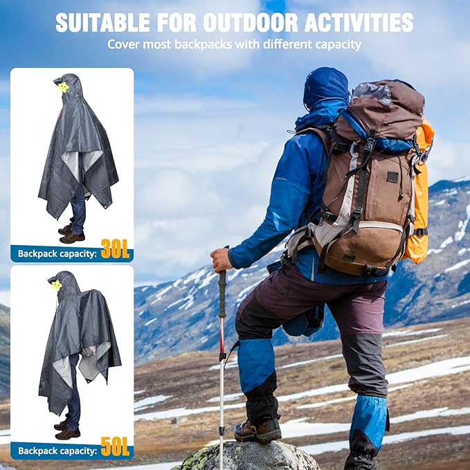 - Breathable & Comfortable: Don't worry that it will make you very hot because the arm holes & bottom are loose enough to allow air circulation.The size is large enough to cover up a backpack as well. It can help keep your backpack dry and prevent water from seeping through and damaging your items. It offers excellent freedom of movement, which makes it very comfortable to wear. Adjusting the snap fasteners on each side it can accommodate a range of body sizes and shapes.
