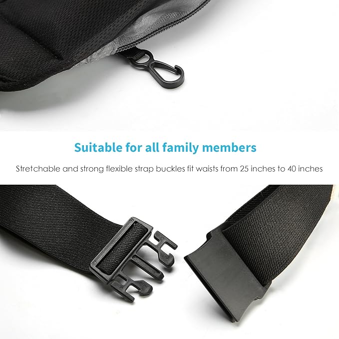 - Waist size: 25 to 40 inches, with stretchable and flexible strap buckles, suitable for all family members. The belt will stay when adjusted to your comfortable length