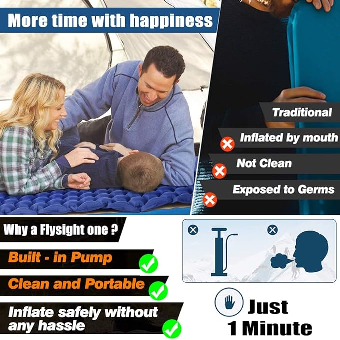 - 【No Risk Purchase】: Flysight always checks over the sleeping pad personally in a random order and it proves that this camping pad is very durable and without any leak these days.