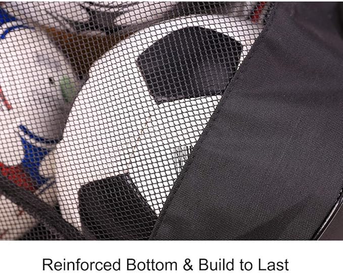 - Large Openning with drawstring closure, easy to put in and out, the elastic opening prevents equipments from falling. it is very convenient and save time to transport many basketballs, volleyballs, rug ball or football at one time, ideal for use at school, sports leagues, outdoor activities, recreational centers and more.
