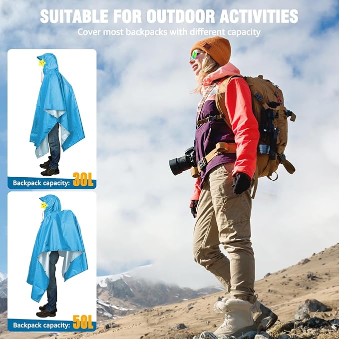 - Breathable & Comfortable: Don't worry that it will make you very hot because the arm holes & bottom are loose enough to allow air circulation.The size is large enough to cover up a backpack as well. It can help keep your backpack dry and prevent water from seeping through and damaging your items. It offers excellent freedom of movement, which makes it very comfortable to wear. Adjusting the snap fasteners on each side it can accommodate a range of body sizes and shapes.