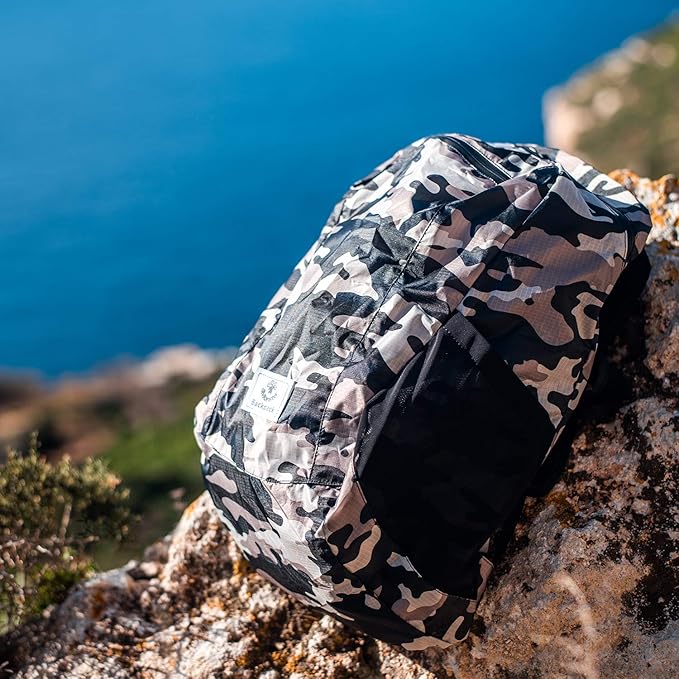 - 【Multipurpose】This Foldable backpack provides enough space for outdoor travel, camping, hiking, day trips and shopping. Comes with a main zipper pocket, a front zipper pocket and two mesh side pockets. The main compartment provides enough storage space for day trips, hiking and shopping. It is also an ideal choice for international travel at the airport.