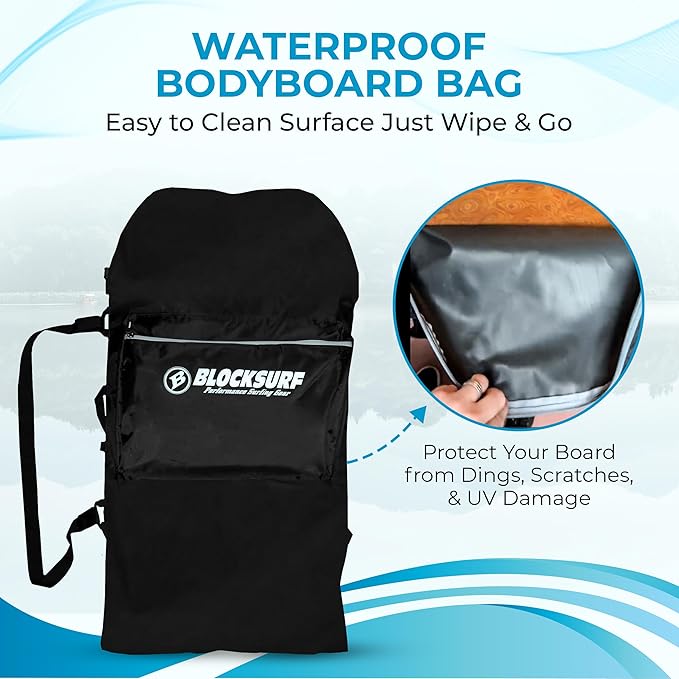 BLOCKSURF Bodyboard Bag | Holds Up to Two 42" Boards | Heavy-Duty Waterproof Design | Adjustable Backpack & Crossbody Straps | Extra Storage Pockets for Gear