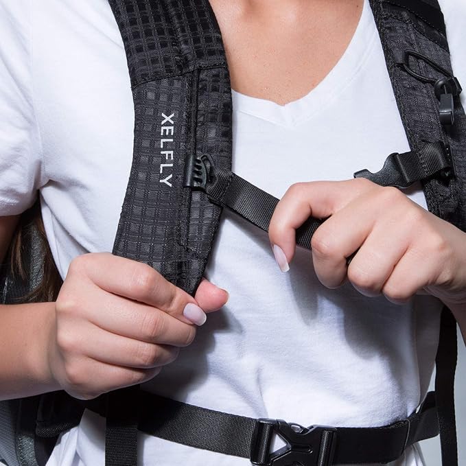 - IT'S COMFORTABLE: The sleek, lightweight design of the Xelfly Submersipack is complemented by a wealth of beneficially designed details such as foam padding on shoulders and back for quick air drying, adjustable sternum straps, and hip straps for ease of movement. No need to dig through your bag to find what you're looking for. With the one-finger pull zippers, 2 mesh water pockets, D-ring and web loops for extra gear, you can access your organized items quickly.