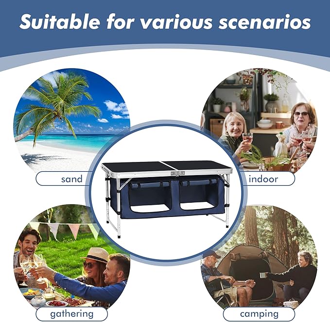 - Multiple Uses: Use this camp table as a grill table, picnic table, or to hold your lantern and other camping gear. It's suitable for all your outdoor activities.