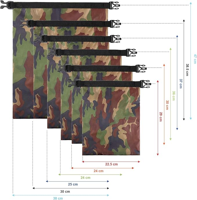 Shappy 6 Pcs Waterproof Dry Bag Set 6 Sizes Lightweight Sacks and Long Adjustable Shoulder Strap Outdoor Water Proof Keep Gear Dry Bag Stuff Sacks for Backpacking, Boating, Hiking, Camping (Camo)