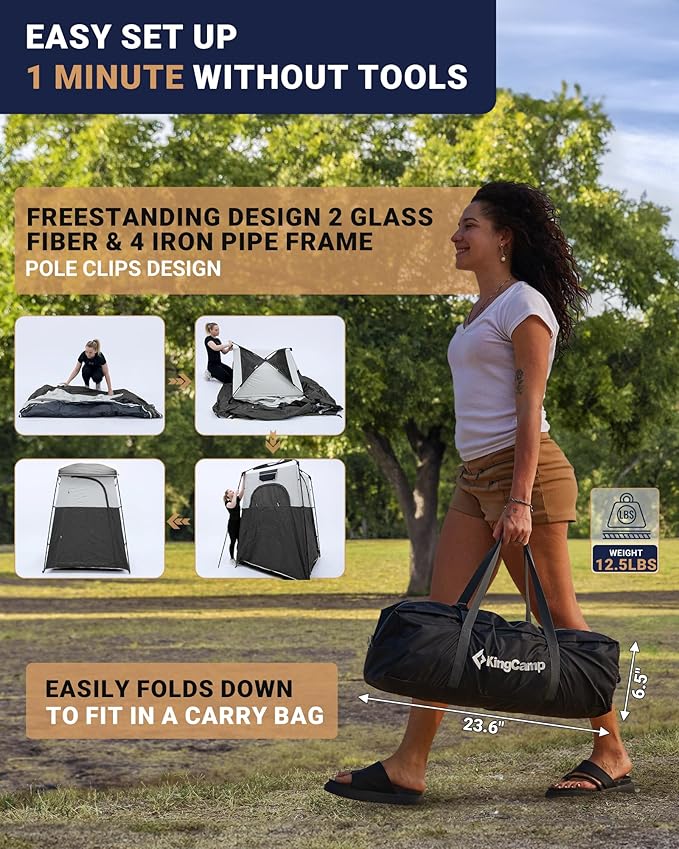 KingCamp Camping Shower Tent, Portable Outdoor Privacy Toilet & Changing Tent Windproof & Waterproof Easy Setup 1 or 2 Room Shelter with Shower Bag for Camping Hiking Beach