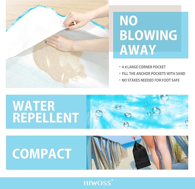 - 【SANDPROOF, WATER RESISTANT & SOFT】The beach blanket is made of sand resistant, waterproof fabrics. Just shake the blanket and it easily gets rid of all the sand once.Sand does not filter through. The Silky Soft Fabric let you lie comfortably while enjoying a pleasant day on the beach.