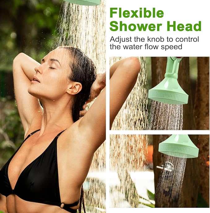 • New Model: Flow rate description: 1.43 GPM Flow rate description: 1.43gpm. The camping shower with Removable Hose and the upgraded solar shower head offers an easy-to-open/close switch with low to high water flow. The hot camping shower is very convenient to control water yield. The outdoor water shower provides high-quality after-sales service to ensure your shopping experience. We can replace or refund your products immediately if they fail.