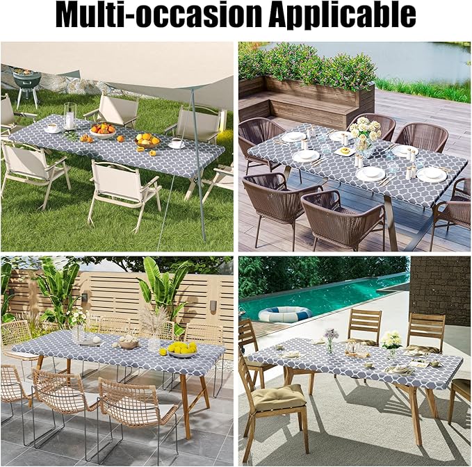 - [Secure Fit with Windproof Design] Smiry's elastic-edged table cover ensures a snug fit, eliminating movement and the need for clips. Say goodbye to disruptions caused by wind or tugging, and savor your meals undisturbed.