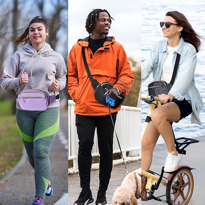 - VARIOUS OCCASIONS: The water resistant purple fanny pack women is a hit hip bag for your daily or outdoor time.Suitable for travel, running, hiking, cycling, dog walking, Disney, concert etc.The pink fanny pack for girls can also be a travel fanny pack, Disney fanny pack,festival fanny pack for Birthday, Christmas, NEW YEAR or Mother's day.This classic black fanny packs for women cute boys bum bag free your hands and won't feel bulky when you go running.