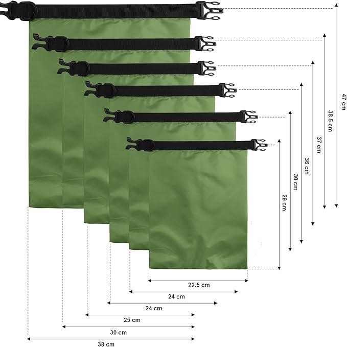 Shappy 6 Pcs Waterproof Dry Bag Set 6 Sizes Lightweight Sacks and Long Adjustable Shoulder Strap Outdoor Water Proof Keep Gear Dry Bag Stuff Sacks for Backpacking, Boating, Hiking, Camping (Green)