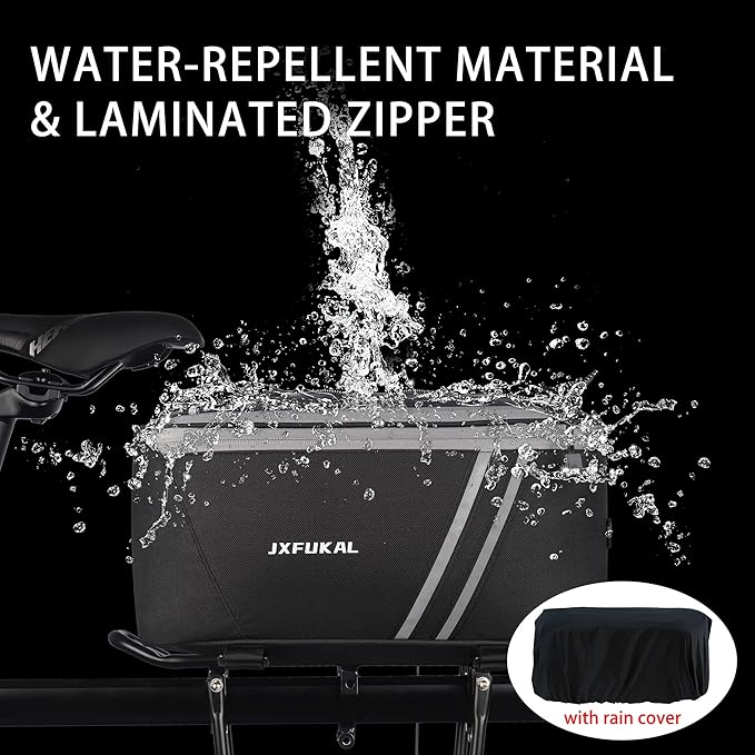 JXFUKAL Rear Bike Rack Bag with Rain Cover, 7L/9L/10L/12L Waterproof Bicycle Ebike Saddle Bag Cycling Pannier Trunk Carrier with Reflector & Adjustable Cord for Commuter Travel Outdoor