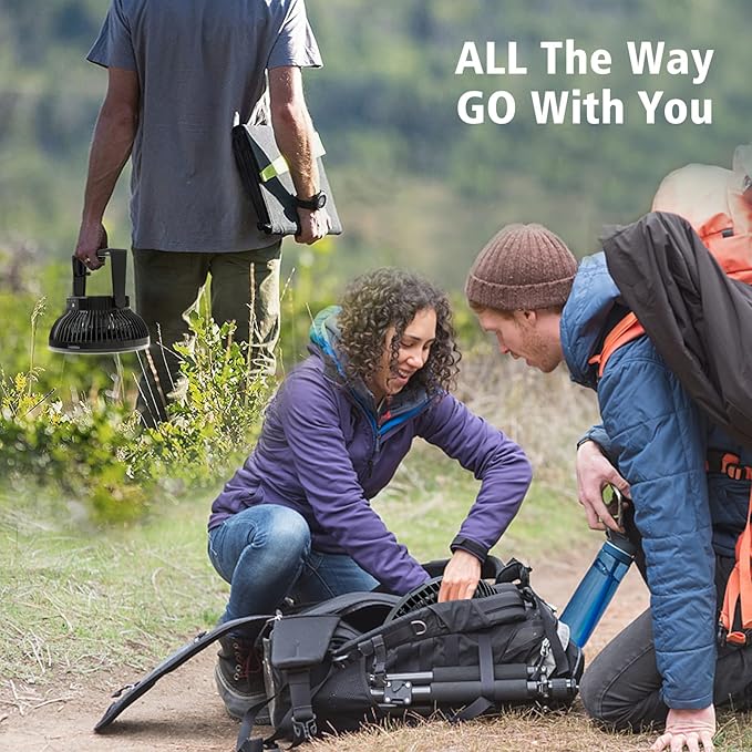 - REAL 10000mAh BATTERY: This cordless fan with built-in polymer rechargeable battery, save you from buying additional batteries, supports the fan to run up to 20 Hours, grant you a cozy outdoor night without worry of battery running out, a must take gear for camping, fishing, hiking and a survival kit for emergencies like hurricane storm