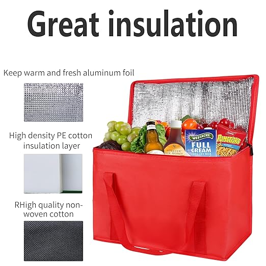 - INSULATION EXCELLENT: The insulated bags feature a cutting-edge triple-layer insulation system(High-quality aluminum foil, Thick thermal insulation foam, High-density fabric). They ensure exceptional temperature retention for your items