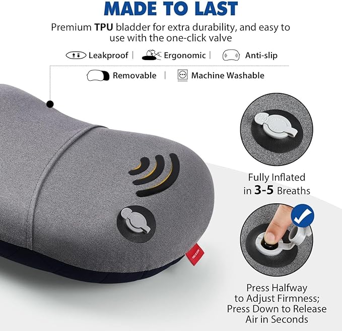 - πππ ππππ πππ πππππππ π ππ πππ ππππππππ: No matter which types of sleepers you are, Hikenture camping pillows for sleeping with the adjustable firmness were designed for your sleep position! Thanks to the patented one-click valve, our blow up pillow only takes 3-5 breaths to fully inflate. Press down the black button of the valve to release air in seconds, and press halfway to adjust the hiking pillow to your favorite firmness.