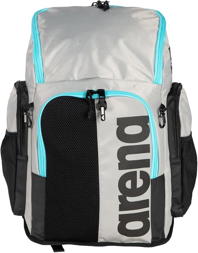 Arena Spiky III Backpack 45 Swimming Athlete Sports Gym Rucksack Large Training Gear Equipment Swim Bag for Men and Women, 45 Liters, Ice/Blue Sky
