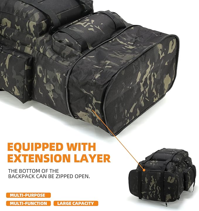 70L/100L Hiking Camping Backpack MOLLE Rucksack Waterproof Daypack for Traveling (Black CP)