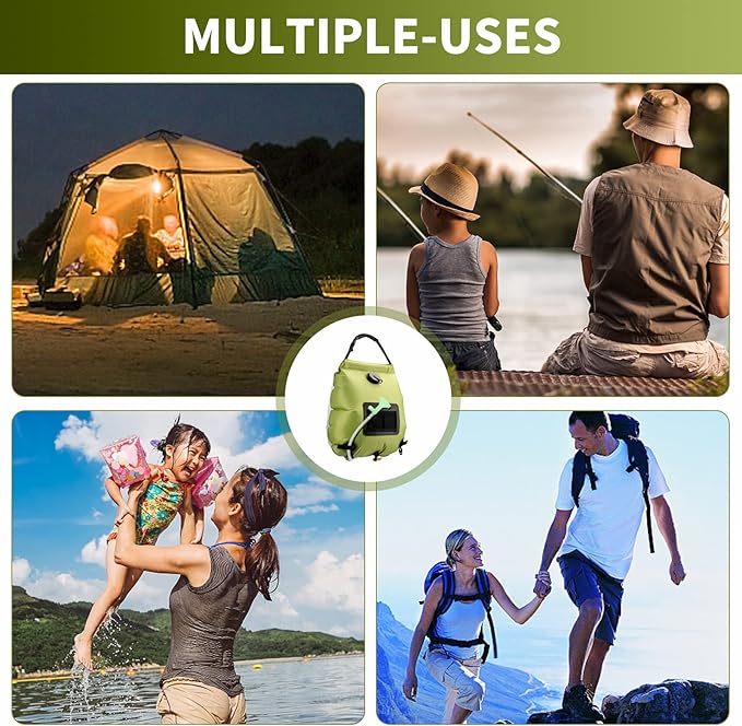 - WIDE RANGE OF USES - This camping showers is suitable for outdoor activities such as camping, backpacking, hiking, fishing or hunting, our portable shower bag is one of the indispensable outdoor equipment accessories for you and your family.It is also the best gift for Father's Day and the perfect camping accessory for men your husband and your children.