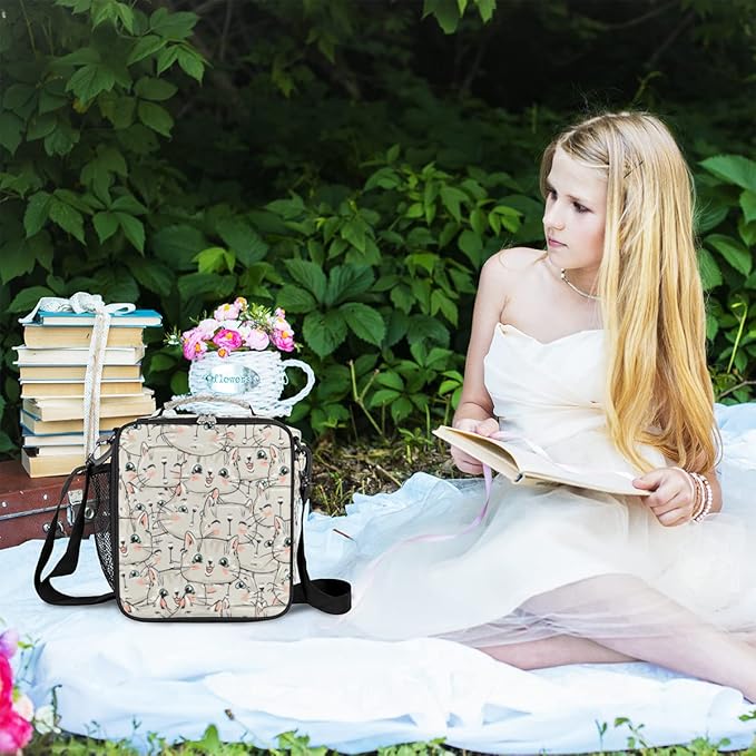 cfpolar Insulated Lunch Bags Animal Kitten Cats Lunch Box for Men Boys Girls Reusable Mini Cooler Lunch Tote Lunchbox Thermal Meal Tote Kit with Shoulder Strap for Work School Picnic