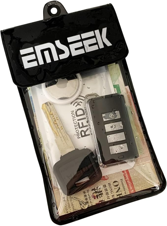 - 3.Floating Design. EMSEEK Floating Waterproof key bag can float in water if you keep enough air inside to close even full loaded. No Worry your valuables sink any more. Please test this ability first if you want it float before using in deep water.