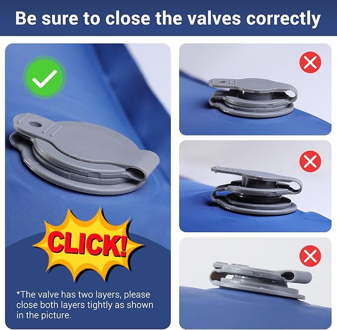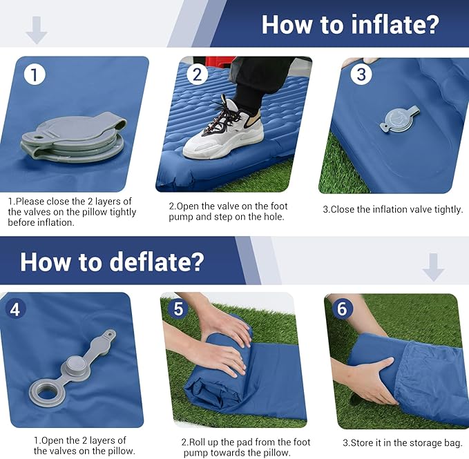 - 【Built-in Foot Pump】Skip messy mouth-blowing and heavy pumps! Elegear’s integrated foot pump inflates this backpacking sleeping pad effortlessly in 3 minutes. The dual-layer leakproof valves ensure airtight security overnight and 30-second deflation. Just remember to close the valves tightly before inflation. NOTE: the inflation time depends on the speed of your foot pressing.
