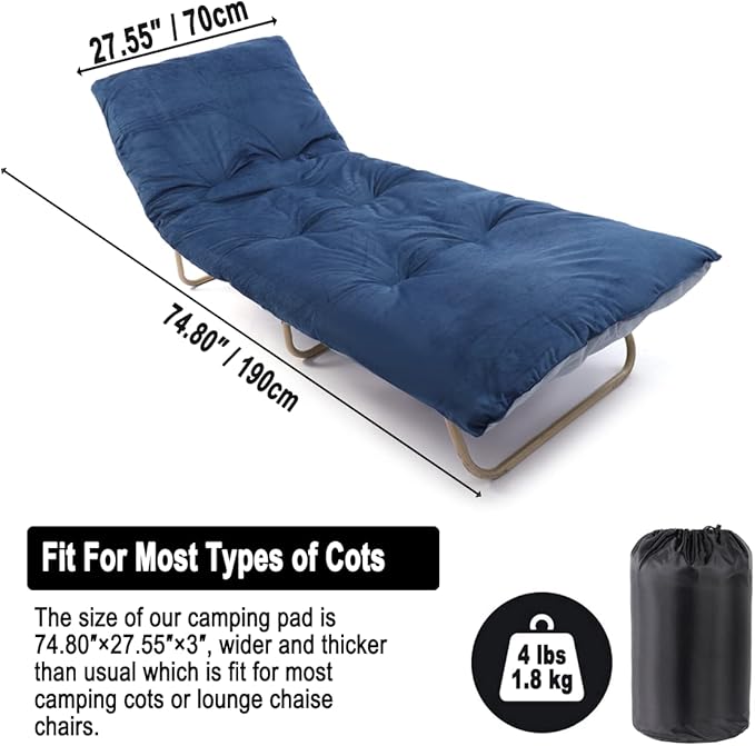 - Convenient and Easy to Carry: The sleeping camping cot pad can be easily installed or folded up into an included storage bag .