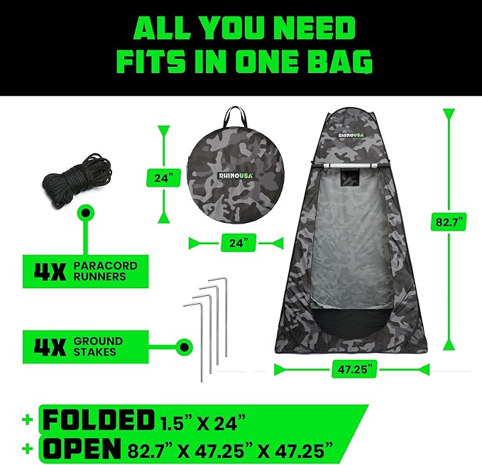 Rhino USA Portable Pop Up Privacy Changing Tent - Ultimate Outdoor Camping Shower, Camp Toilet, Rain Shelter for Beach and Camping - Lightweight and Sturdy, Instant Setup While On-The-Go
