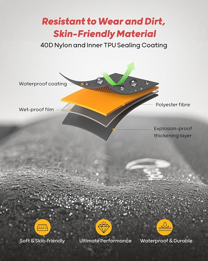 - Durable & Waterproof: Designed to last and withstand the elements of the great outdoors, this cushion is made of TPU Nylon and is waterproof. This inflatable pad can be cleaned with just a wipe thanks to its waterproof surface.