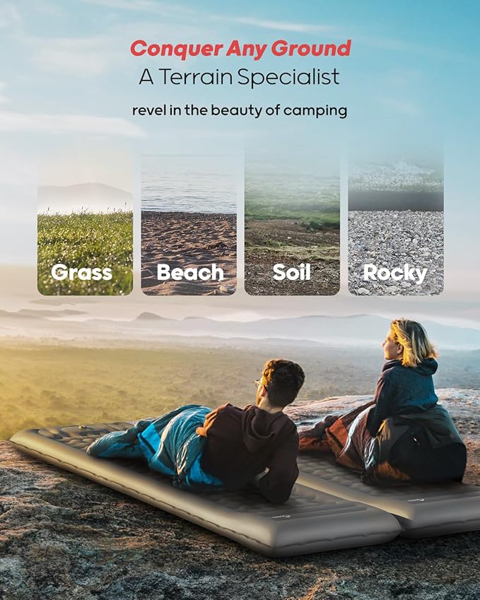 - Enhance Your Camping Experience: The revolutionary inside design of this camping mat is intended to provide you with a cloud-like sleeping. Due to its improved internal structure, the inflatable pad can prevent the situation from contacting the ground even when supporting up to 800 pounds.