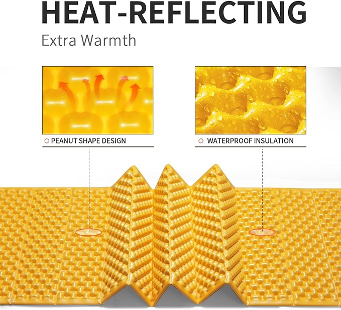 - 【Upgraded Version】The foam sleeping pad is covered with aluminum film, this extremely lightweight coating turns that surface into a very efficient heat reflector, amplifying warmth without the excess weight or bulk added, conventional insulating material is more moistureproof, more durability and easy to clean than the traditional model.