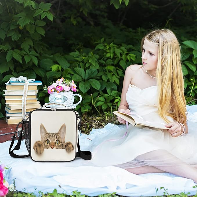 - ๐ปใConvenient & Versatileใ--Excellent build quality with funny patten, this cute animal cat lunch bag is easy to carry for everyone, such as children, girls, boys, students, and is also great for travel, school, beach and picnics. The exceptional insulation of the bag keeps the food at the desired temperature, ready for consumption.