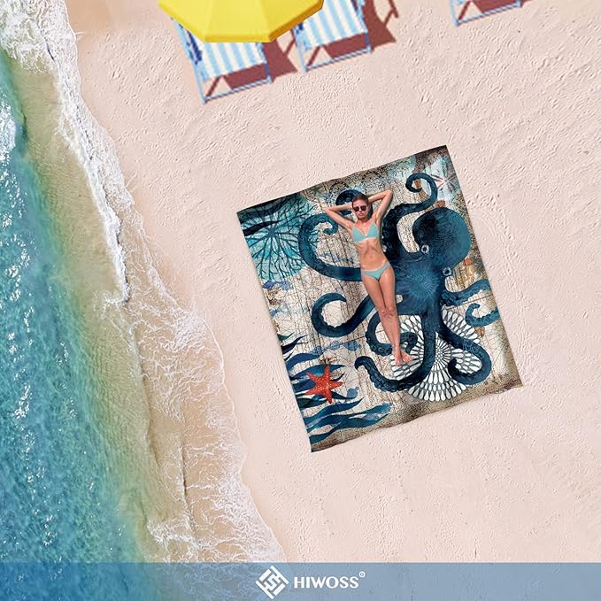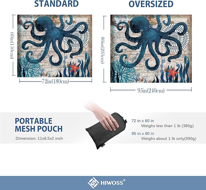 Beach Blanket Waterproof Sandproof Oversized 95”x 80”,Sand Free Beach Mat with Corner Pockets,Portable Mesh Bag for Beach Festival,Picnic,Travel and Outdoor Camping (Octopus)