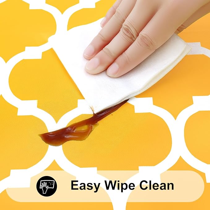 - [Waterproof & Wipe Clean] Our table cover surface is made of selected vinyl material, which can effectively waterproof. Spill proof coating makes tablecloth easy to clean, just wipe it off with a damp sponge or rag in a minute.