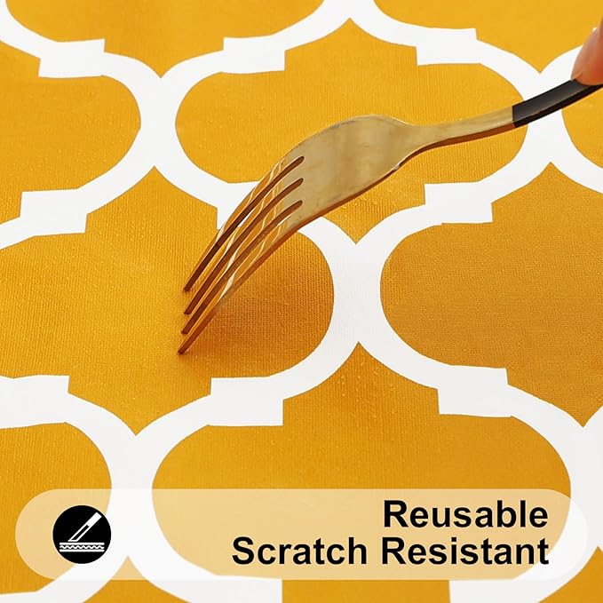 - [Highly Reusable] Our fitted table clothes with classic Moroccan patterns can give you a warm and bright dining environment. It is also suit for a variety of occasions: picnic, camping, party, dining room, kitchen, banquet, patio and more.