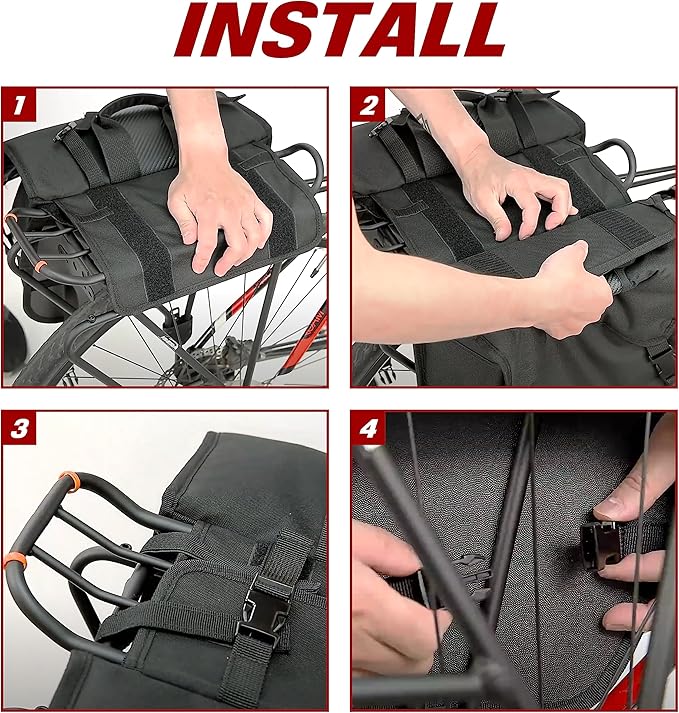 - Secure 3-point connection - The design of 3-point interlock can further secure the bike panniers from side swing