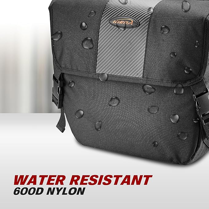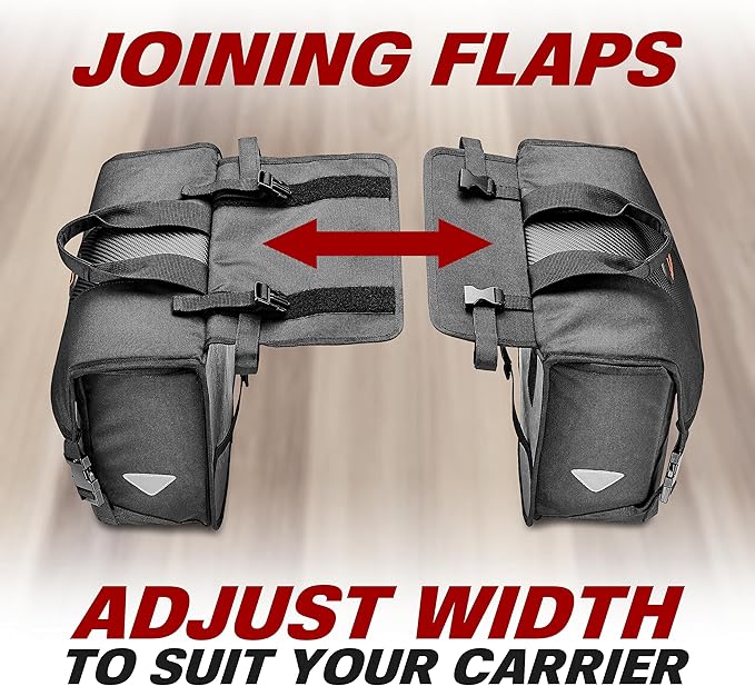 Ibera Adjustable Bicycle Bag (Pair) with Quick Release/Clip-On System - Water Resistant Bike Saddle Bags For Rear Rack with & 19.8 lbs Capacity Each - Saddle Bag Bicycle Fits Most Racks (Black)