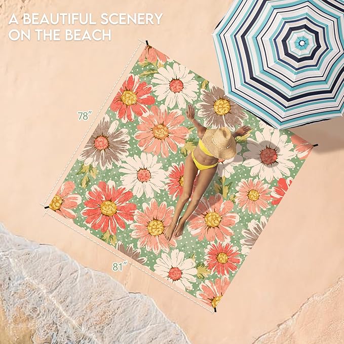 - ๐๏ธBeach Blanket Oversized:Good tear resistance,dry quickly.Also can be used as a rain shed,sunshade,tent,toddler crawl,emergency mat.Feel comfortable to lying down.Won't irritate your skin,better professional fabric sewing.