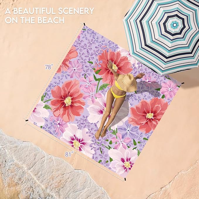 - ๐๏ธBeach Blanket Oversized:Good wear resistance,Dry-Quick.Can also be used as a rain shed,sunshade,tent,toddler crawl,emergency mat. Feel comfortable lying down,Won't irritate your skin,Better professional fabric sewing.