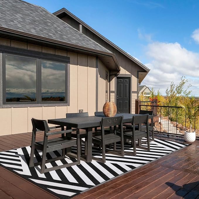 - ๐๐๐ซ๐๐๐จ๐จ๐ญ-๐ ๐ซ๐ข๐๐ง๐๐ฅ๐ฒ ๐๐จ๐ฆ๐๐จ๐ซ๐ญ: Featuring a smooth woven texture crafted from premium plastic straws, this rug delivers a soft underfoot experience with non-slip backing for secure placement on wooden decks, concrete surfaces, or apartment balconies, ensuring safety and comfort in barefoot environments