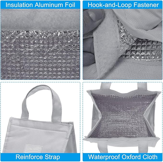 - Advantage: The lunch bag is made of waterproof Oxford cloth and an aluminum foil insert, which is durable and tear-resistant. The interior is equipped with thermal insulation cotton and aluminum foil to avoid heat and effectively keep warm and cold. The top zipper and the hook-and-loop fastener are easy to open and close. Equipped with a hand strap, it has a strong bearing capacity and is easy to carry.
