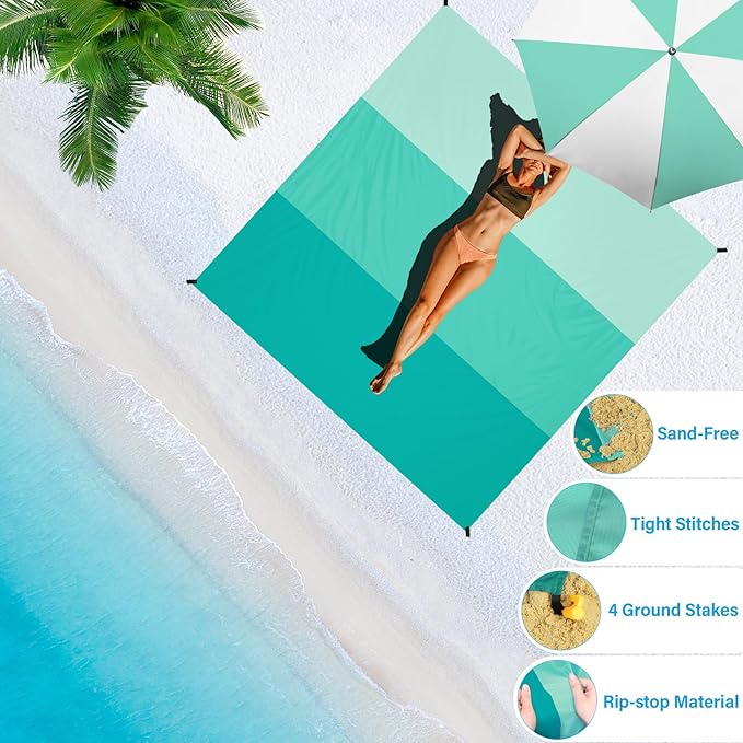- ๐๏ธBeach Blanket Oversized:Good tear resistance,dry quickly. Can also be used as a rain shed,sunshade,tent,toddler crawl,emergency mat. Feel comfortable to lying down. Won't irritate your skin,better professional fabric sewing.