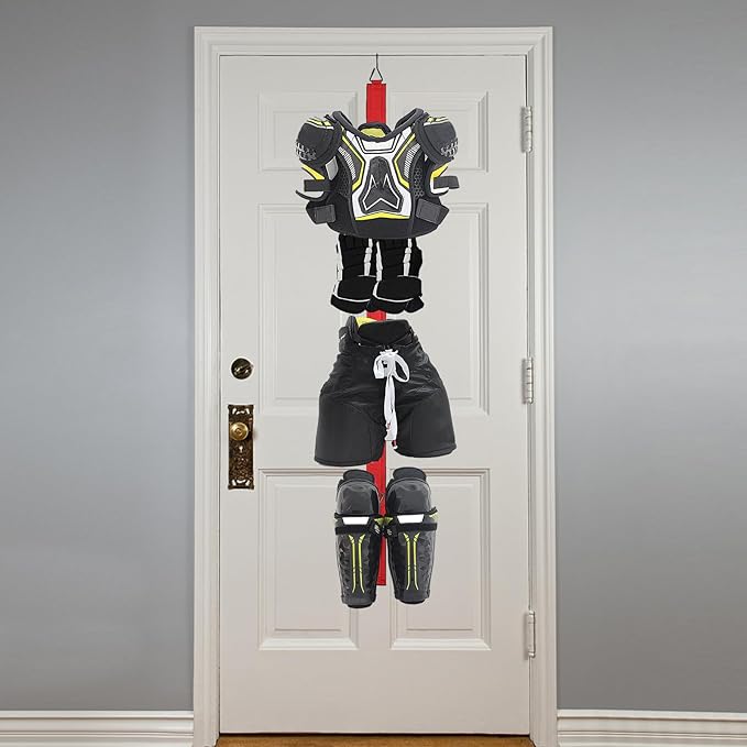 Hockey Hanger Portable Hanging Dryig Rack Hockey Gifts for Home and Outdoor Using in Ice Hockey Skating Football Camping Fishing 5 Hooks (Red)