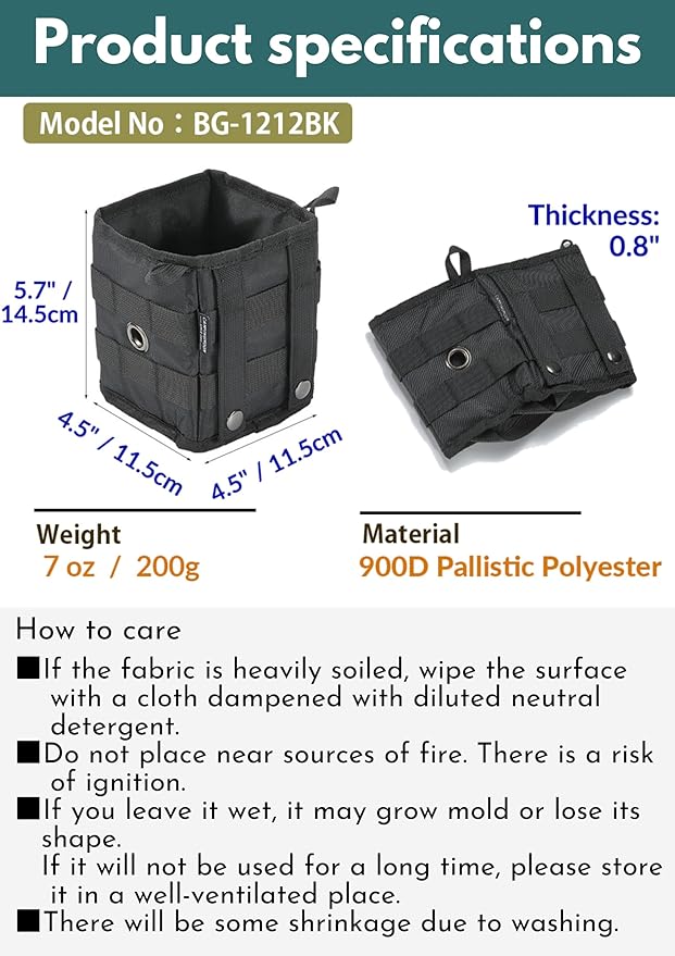 - Material 900D ballistic polyester : Item Weight 0.4 Pounds