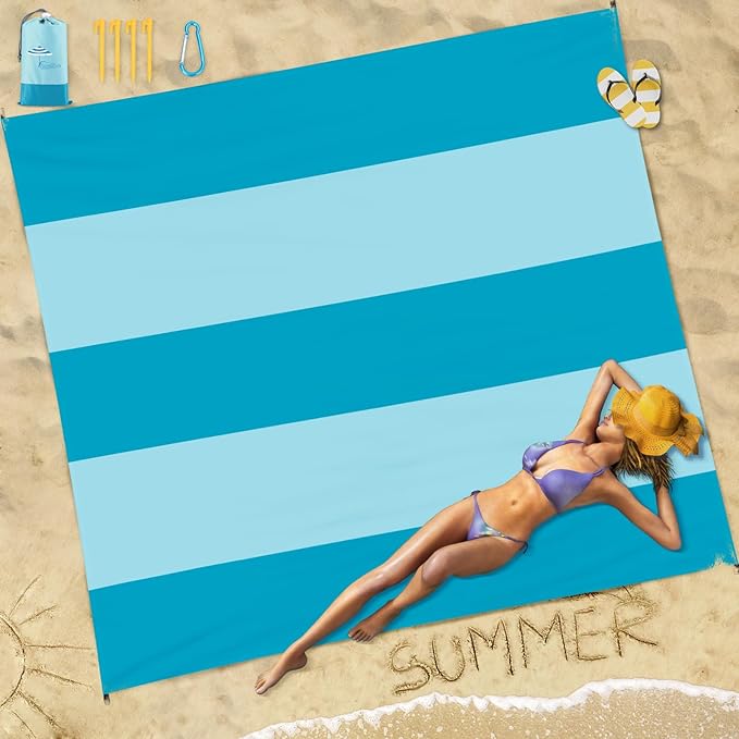 - ๐BIG BEACH BLANKET:Package includes 1 carabiner,4 ground stakes for 4 anchor loops,to keep it from blowing around on the beach.Perfect for outdoor uses,it will remain secure and stable on windy days.