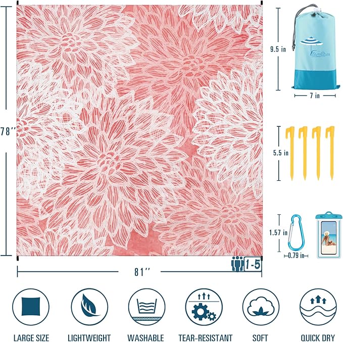 - ๐ดBEACH BLANKET SANDPROOF WATERPROOF:78''ร81'' fits 1-5 adults.Made with ripstop 210T polyester.The sand will fall down when you shake the blanket.The little water left behind will dry out in minutes.