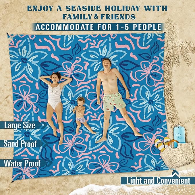 Beach Blanket Sandproof Waterproof 78''ร81''1-5 Adults Oversized,Compact Lightweight Durable Beach Mat for Travel Camping Hiking Picnic Blanket